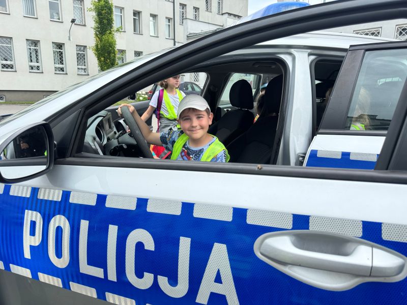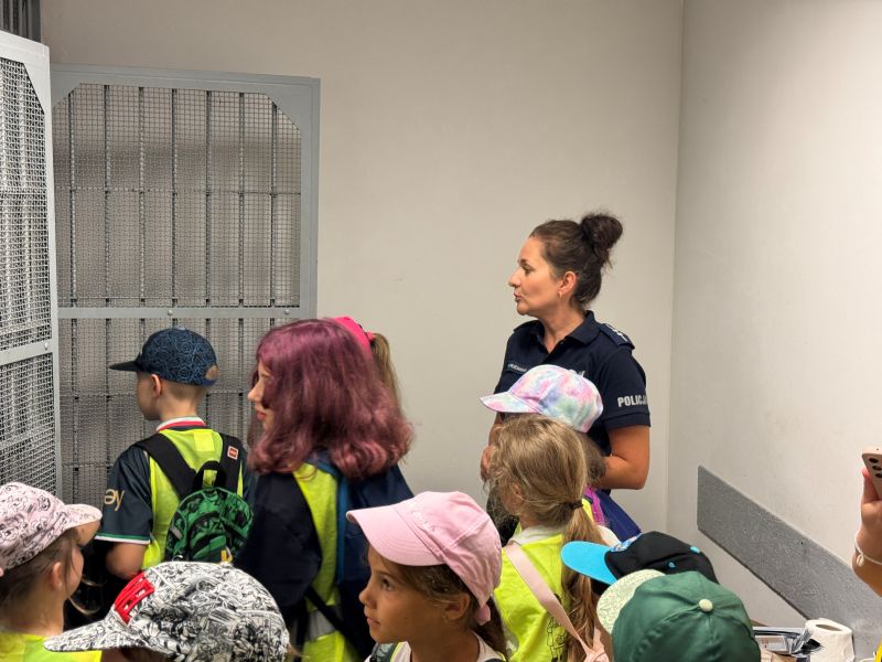 Młodzież z półkolonii zwiedzała policyjne cele oraz zapoznawała się z procedurami, miała możliwość usiąść za sterami radiowozu, a także spotkała przewodnika psa służbowego oraz jego specjalistycznego psa Korka - wyszkolonego do wykrywania narkotyków. Dzieci z zaciekawieniem poznawały jego pracę i miały okazję pogłaskać Korka. Na zakończenie odbyła się pogadanka o bezpieczeństwie w ruchu drogowym: dzieci dowiedziały się, jak ważne są odblaski, otrzymały także elementy odblaskowe.