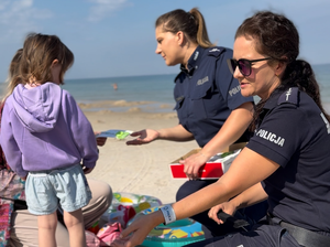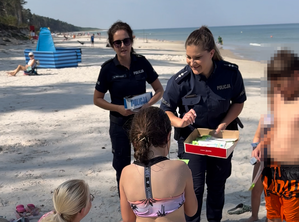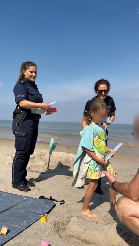 Wczoraj policjantki z Komendy Powiatowej Policji w Wejherowie odwiedziły plażę w Lubiatowie, gdzie zadbały o bezpieczeństwo najmłodszych plażowiczów i przypomniały o ważnych zasadach podczas wakacyjnego wypoczynku nad wodą, ale także o bezpieczeństwie w drodze do szkoły.