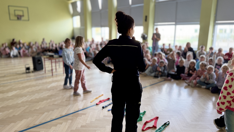 Drugie spotkanie odbyło się z uczniami klas I–III i dotyczyło zasad bezpiecznego poruszania się po drogach. Funkcjonariuszka przypomniała najmłodszym, jak prawidłowo przechodzić przez jezdnię, dlaczego noszenie elementów odblaskowych jest tak ważne oraz jak zachować ostrożność w pobliżu ulicy. Omówiono również zasady korzystania z rowerów, podkreślając, że dzieci w tym wieku mogą jeździć na rowerze tylko pod opieką dorosłych.