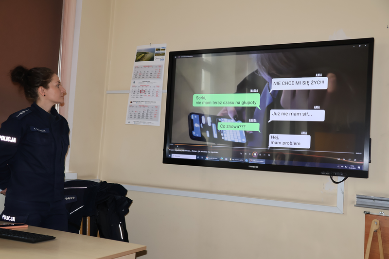 Podczas zajęć funkcjonariusze w przystępny sposób przybliżyli młodym ludziom tematykę bezpieczeństwa w sieci. Rozmowy dotyczyły tak kluczowych zagadnień, jak cyberprzemoc i hejt. Uczniowie mieli okazję dowiedzieć się, jak reagować na zagrożenia i gdzie szukać pomocy.
