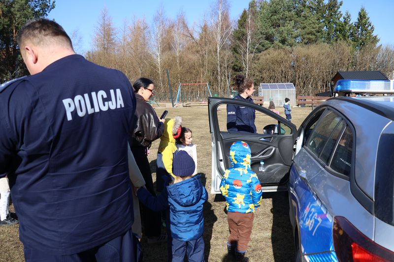 Nie zabrakło także elementów praktycznych. Przedszkolaki z radością wsiadały do policyjnego radiowozu, gdzie mogły poczuć się jak prawdziwi funkcjonariusze. To doświadczenie pozwoliło im lepiej zrozumieć, na czym polega praca policji i jak duże znaczenie ma dla bezpieczeństwa nas wszystkich.